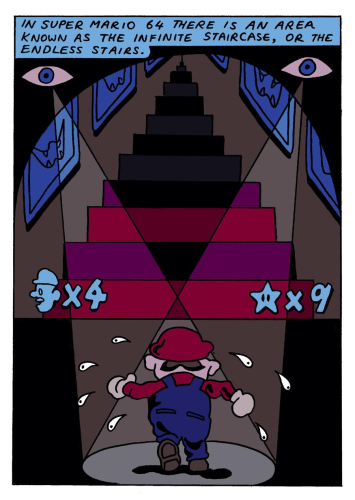 What connects the 1996 video game Super Mario 64 and the 1946 film A Matter of Life and Death? Futility, despair, and very small men on very large staircases.